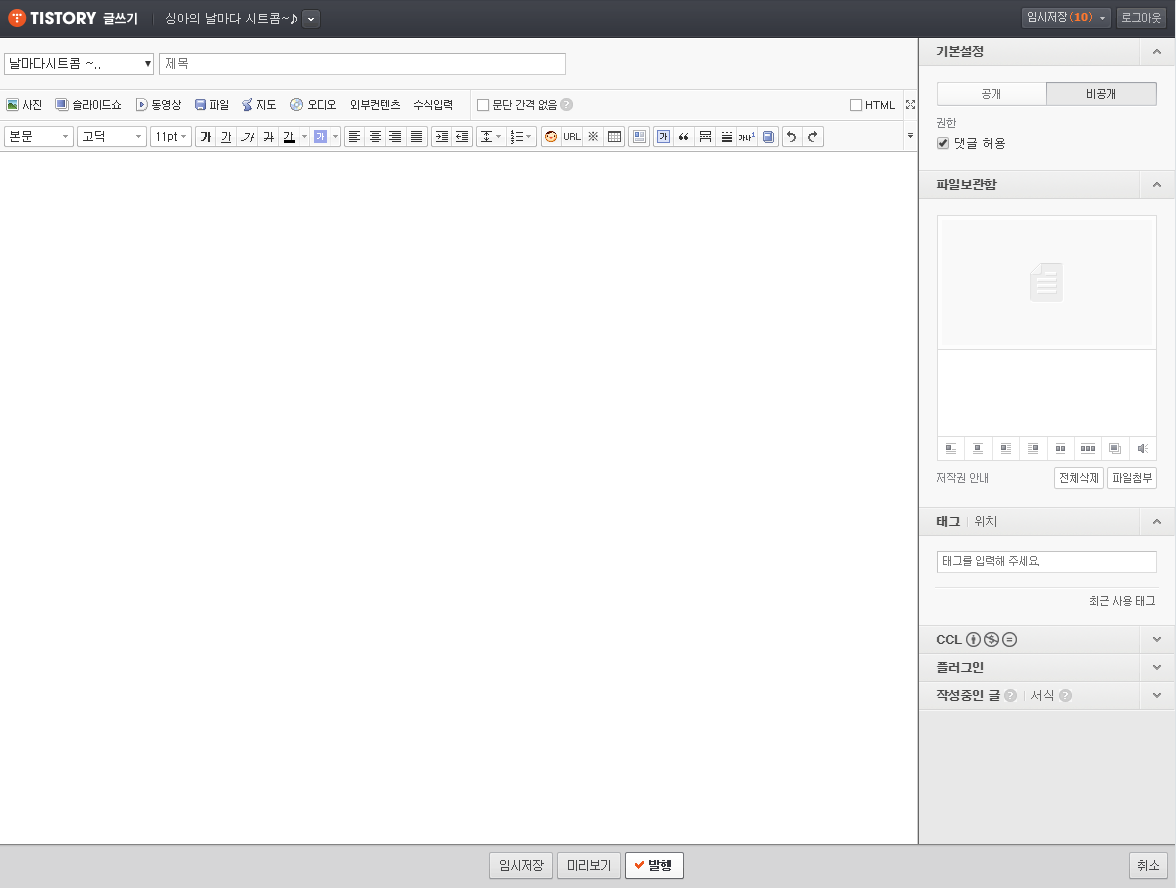 편집기 설정을 바꾸고 나서 글쓰기를 하면 다음과 같은 편집기 화면에서 글을 작성할 수 있게 된다. (이것이 신형 편집기 화면)