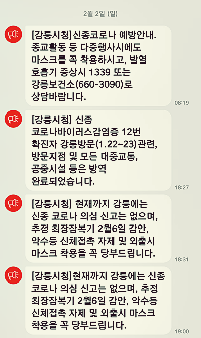 코로나 바이러스 때문에 난리도 아니다. 내가 있는 지역에는 중국인부부가 KTX타고 놀러와서 이리저리 다니는 바람에 시청에서 문자를 여러번 보내줬고, 서울에 있는 집 주민센터에서도 현황을 보내줬다. 의외로 내가 있는 동네는 마스크 쓰는 사람과 안쓰는 사람 비율이 6 : 4 정도 (안쓰는 사람이 6) 인듯 싶은데, 서울 다녀온 동료에 말로는 80% 이상 마스크를 쓰고 있다고 한다.