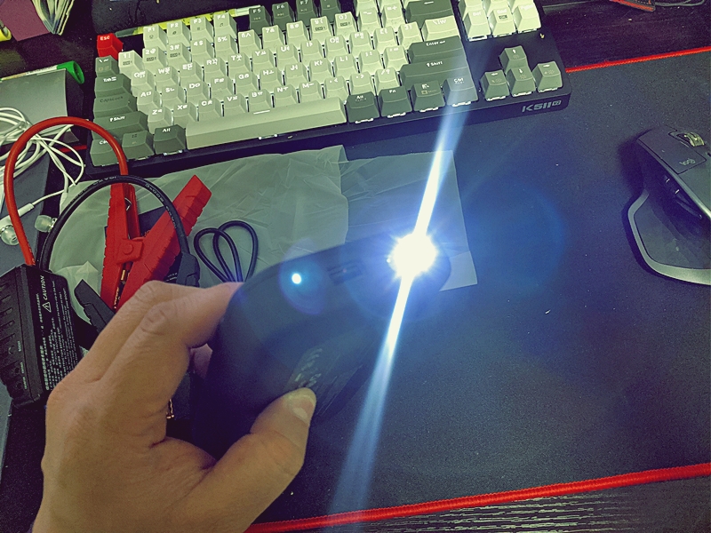 이 녀석은, 평소에는 보조배터리로 사용할수도 있고, 플래시로도 사용할수 있으며, 자동차 배터리 방전시에는 12V전압 공급용으로 사용이 가능한 유용한 제품이다. 내 차의 경우 하이브리드라서 이 제품이 필요가 없지만 (자체 배터리 리셋 기능내장), 혹시나 가지고 다니다가 다른 차들에게 도움을 줄수 있지 않을까해서 차에 구비해둘 목적으로 구매했다.