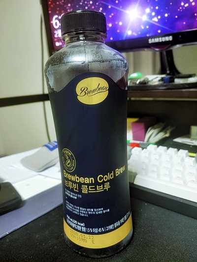 브루빈 콜드브루 남색 (검정색은 쓴맛이 강함) , 저렴한데 맛있음. 750ml 인데 칼로리는 20kcal 뿐. 1280원에 구매해서 마시고 있는데 이만한 가성비는 없을듯 하다. 따뜻하게 마시고 싶을땐 커피포트에 옮겨서 끓이기만 하면 되고.. 간편함의 끝판왕인건가...