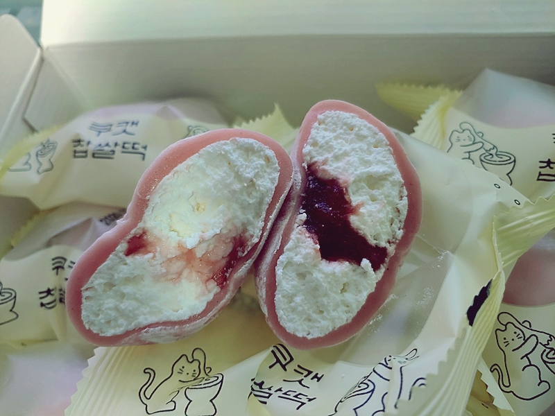 상당히 쫀뜩쫀뜩하고, 딸기우유 맛과 딸기잼, 생크림이 어우러진 그런 맛이다. 식감도 맛도 아주 훌륭하다! 냉동 보관했다가 먹어도 되고, 유통기한도 냉동보관 시 11월 9일까지로 엄청 길~다. 케이크 선물 말고 이런 음식 받아본 것이 처음인데 역시 신세대(?)는 다르긴 다르구먼~~