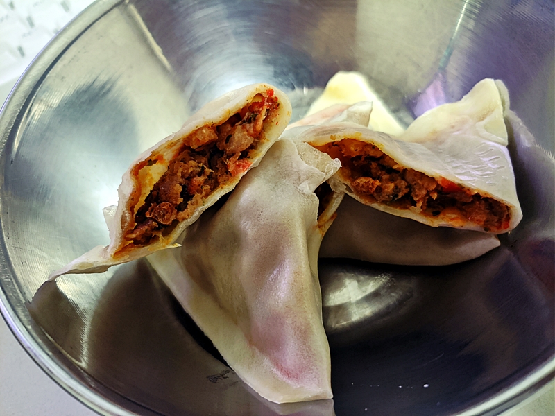 3분여의 시간이 지나고, 땡~~ 소리와 함께 김이 모락모락 나는 삼각피자만두 등장