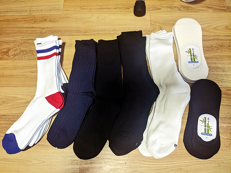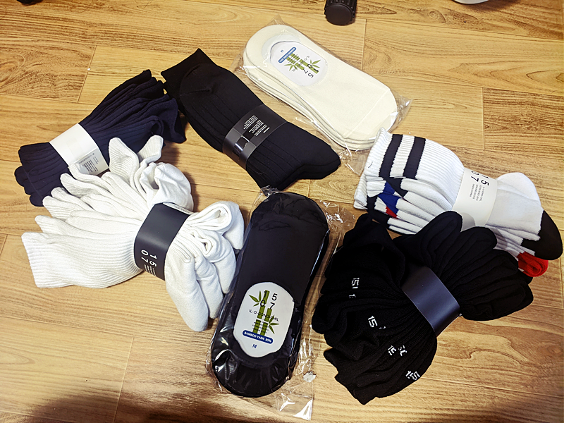 청소하고 빨래를 하다 보니 구멍 난 양말 몇 개를 발견하고, 구멍난 것들은 버린 후, 양말을 새로 구매했다.