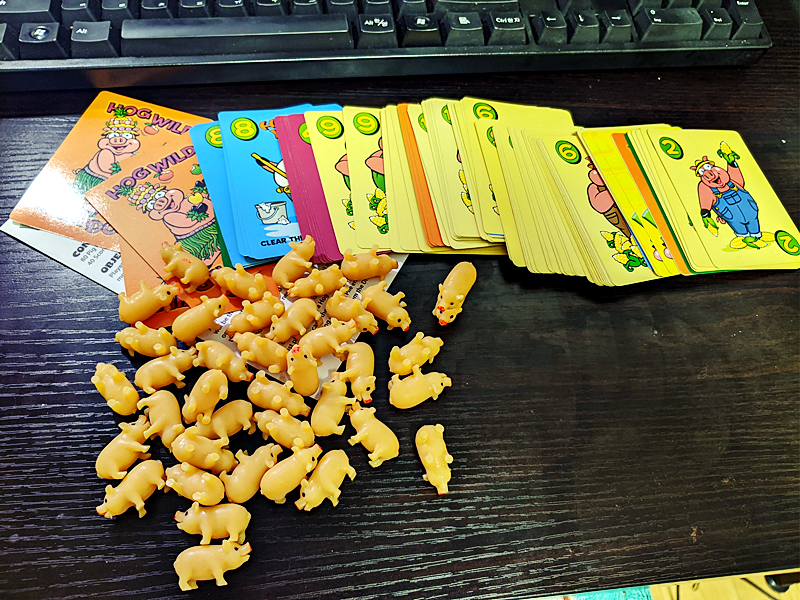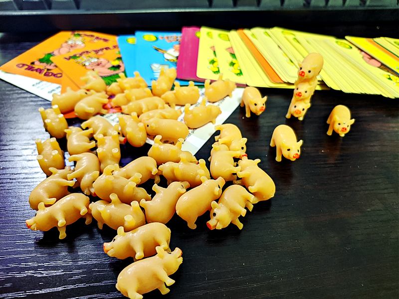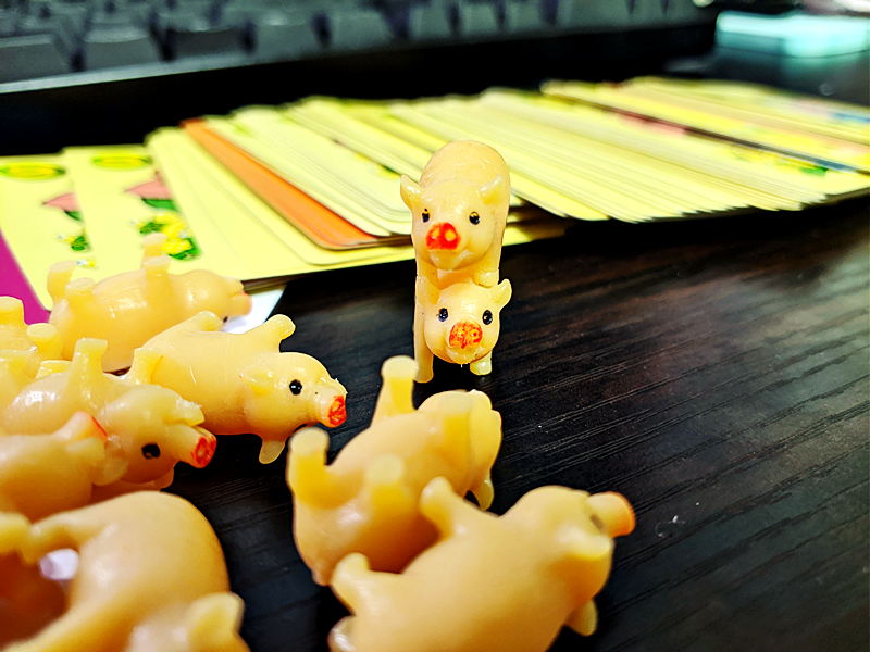 돼지 피규어를 나눠갖고 카드 손털기를 통해 돼지를 뺏어오는 게임