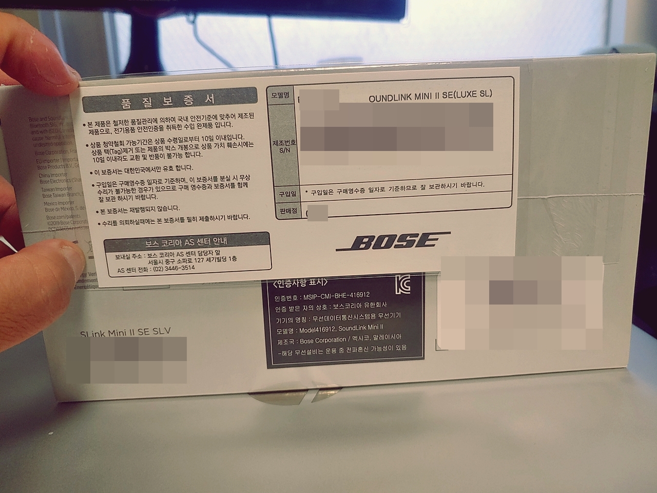 보증서가 겉면에 덜렁덜렁 붙어 있음