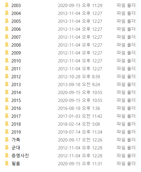 컴퓨터에 중구난방으로 저장되어 있는 사진들을 연도 별로 정리를 했다.