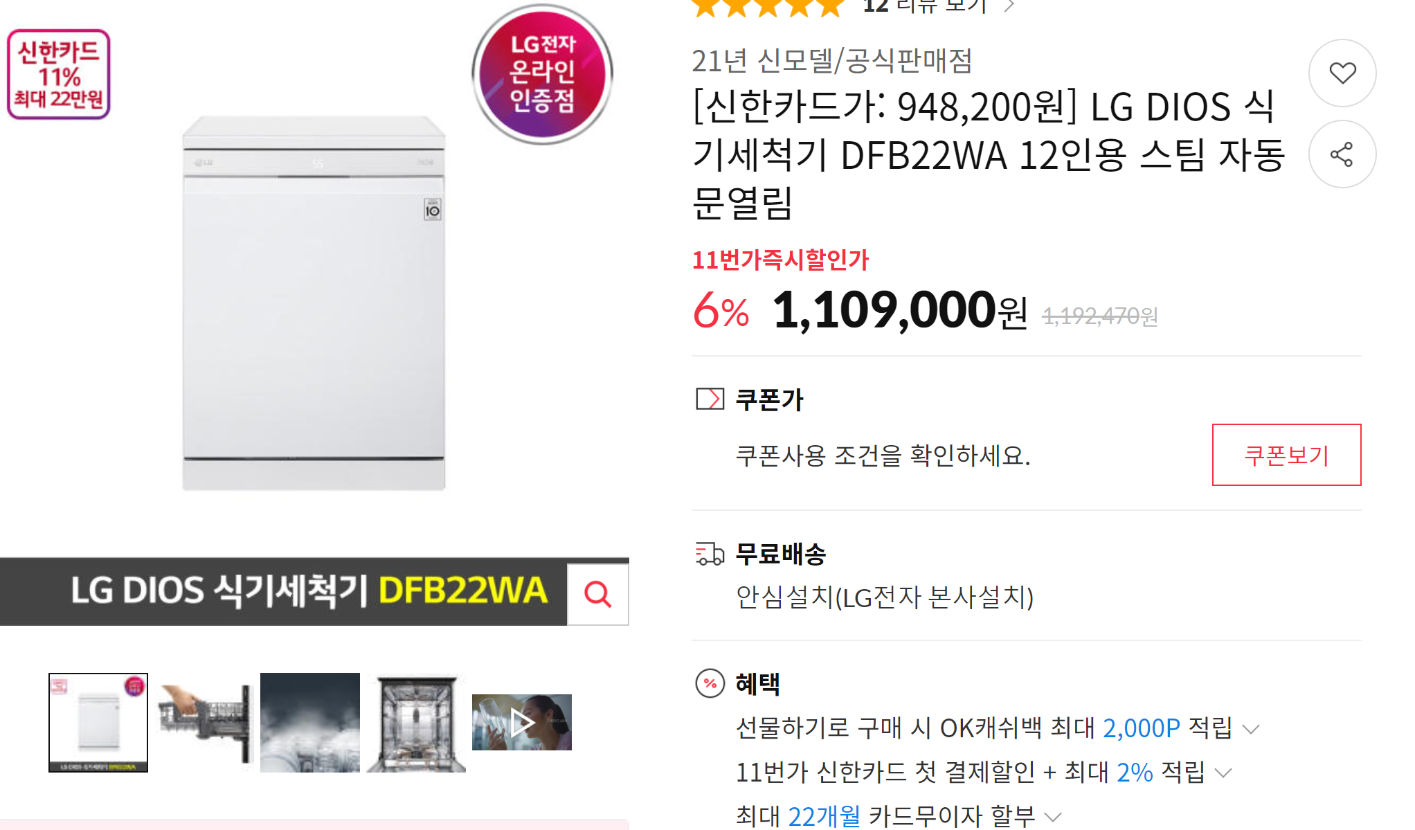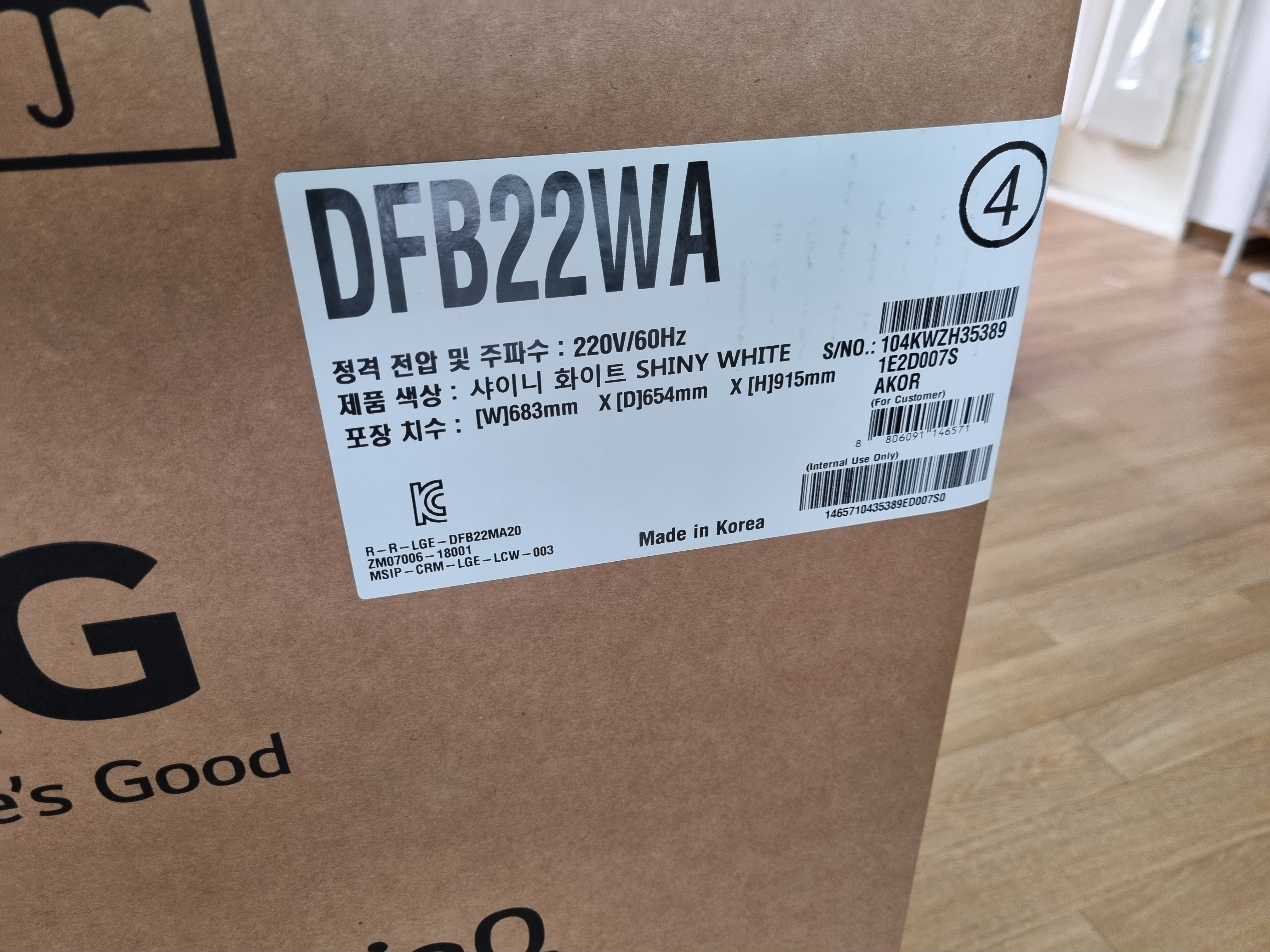 가전은 LG라는 믿음으로 LG 디오스 DFB22WA 를 구입함.