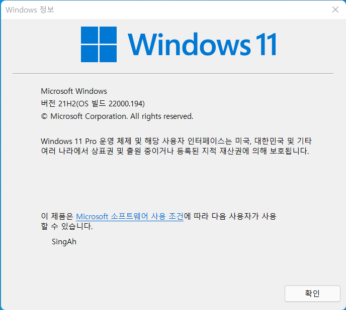 WINDOWS11 UPGRADE.EXE 을 실행시킨다.