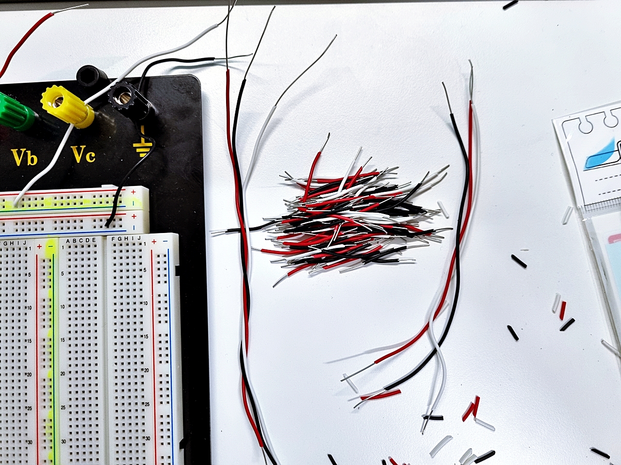 1묶음은 브레드 보드 위에 +VCC -VCC GND 에 꼽고 전원공급기와 연결할 선이다.