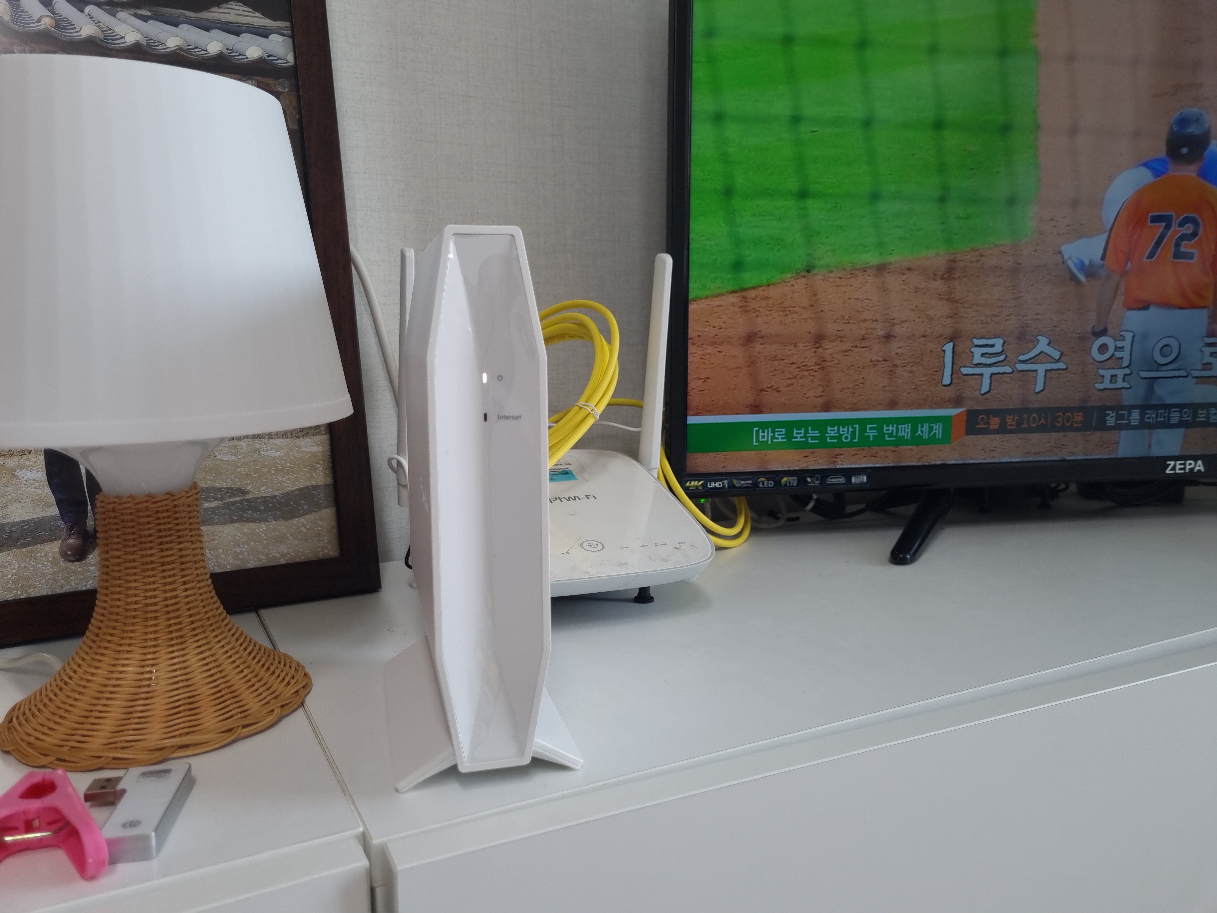 공유기 라기 보다 가전에 가까운 디자인 이었다. TV옆에 놔둬도 공유기인지 모르는 그런 디자인.