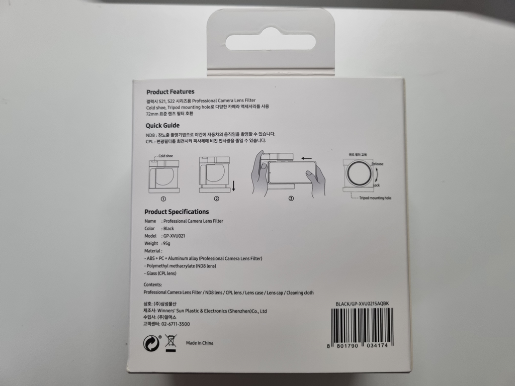갤럭시 카메라 렌즈 필터, CPL 이랑 ND 필터 1개씩 들어 있음.