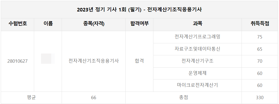 | 2023년 제1회 전자계산기조직응용기사 필기 후기 (0) | 2023.02.14 |
