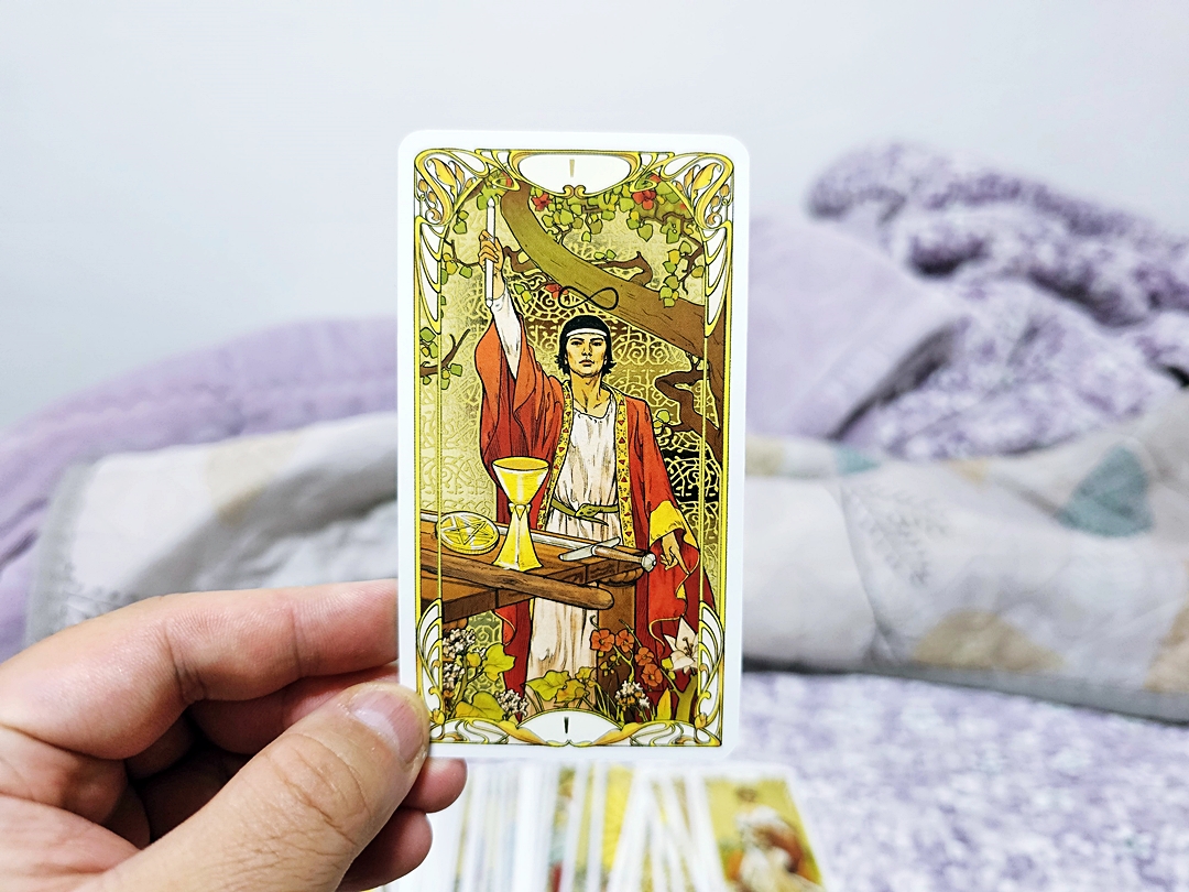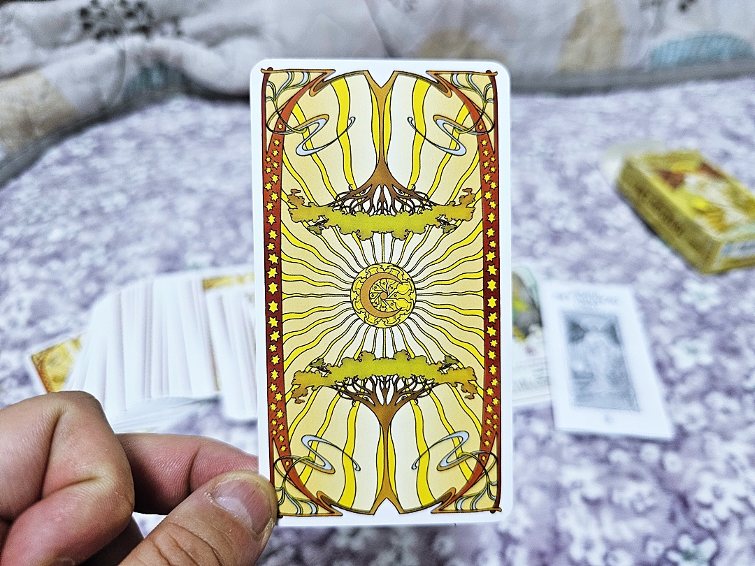 시크릿타로가 조금 우울한 느낌이 있었다면, 이 카드는 금박이라서 그런지 밝고 희망찬 느낌이 가득하다.