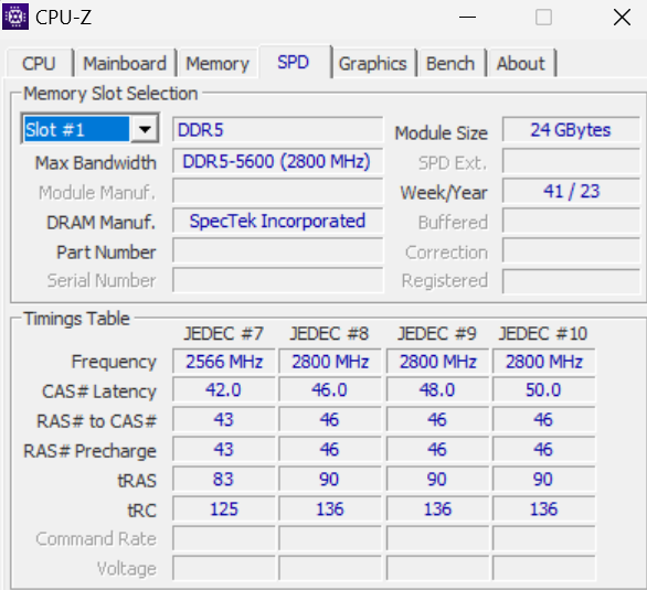 메모리 자체는 DDR5 5600MHz 제품인데, 내 노트북에서는 4800MHz으로 동작한다.