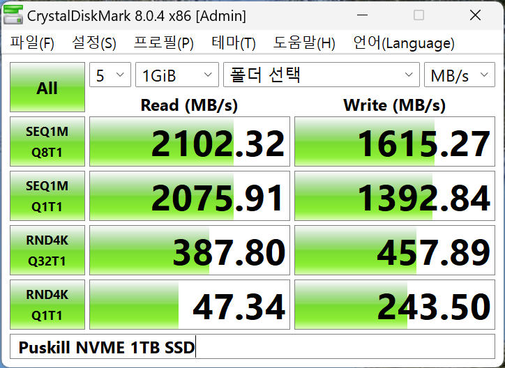 푸스킬Puskill NVME 1TB SSD 구입했다.