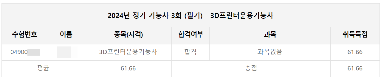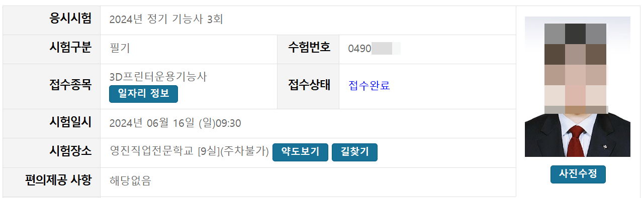 갑자기 3D프린터에 급 관심이 생겨서 응시하게 된 자격증.