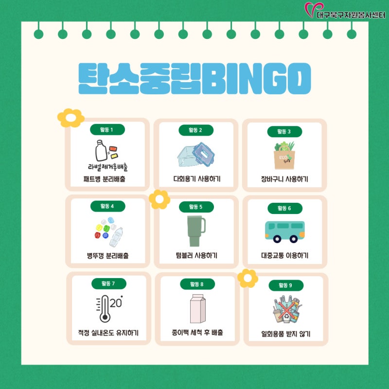 대구 북구 자원봉사센터에서 미니봉사 챌린지를 하고 있습니다.