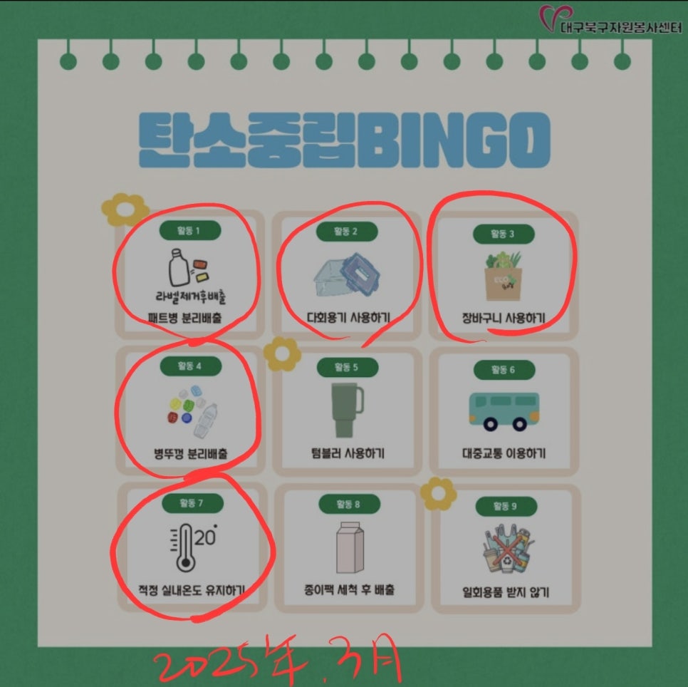 미니봉사 챌린지 빙고판 완성.