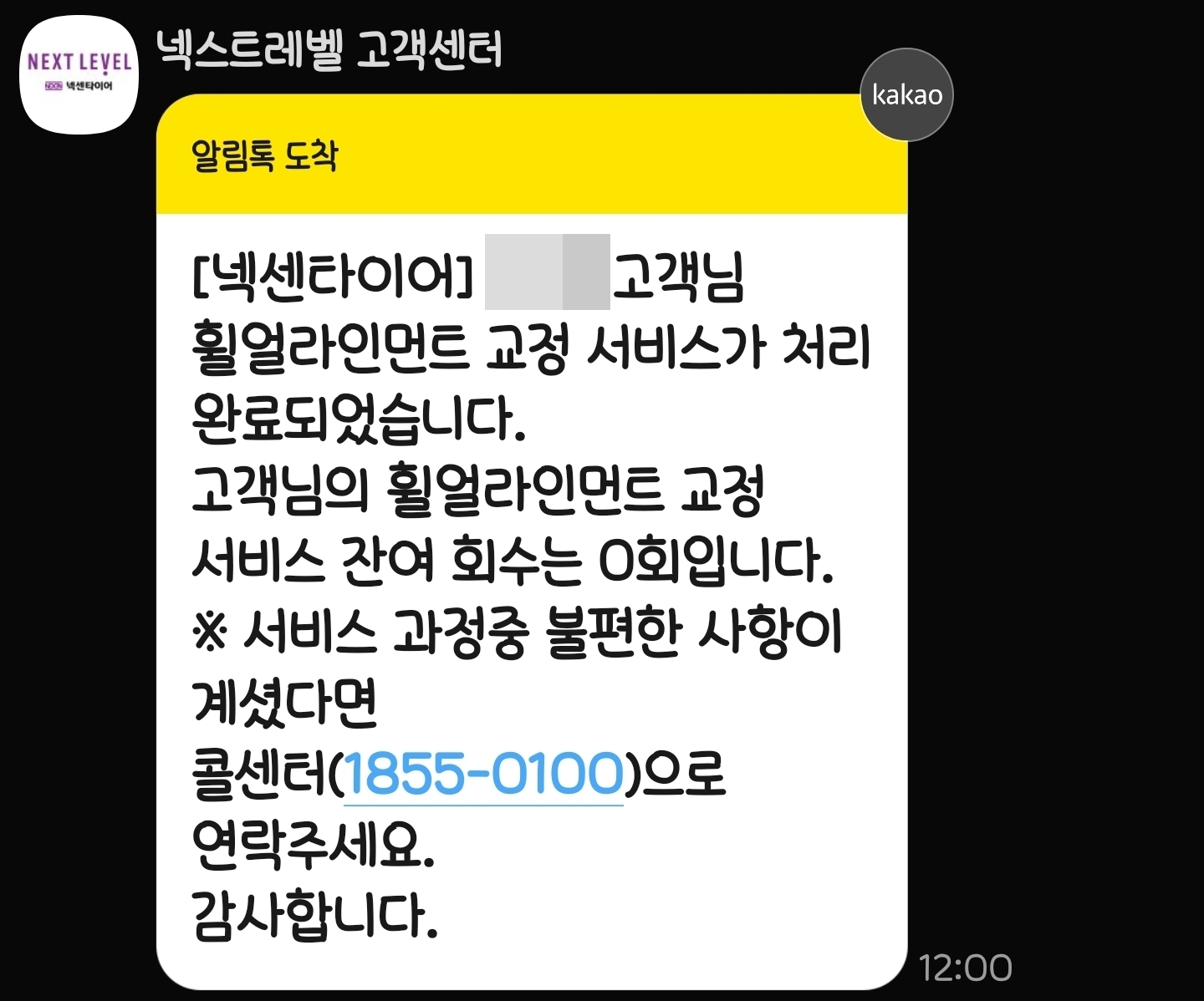 얼라이먼트까지 1시간정도 소요 된다고 해서 근처 카페가서 시간보냈는데, 설치가 끝났는지 문자가 왔다.