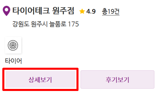 지급하는 품목이 체크가 되어 있다. 내가 선택한 지점은 타이어만 취급하는 곳이었는데, 다른 곳은
