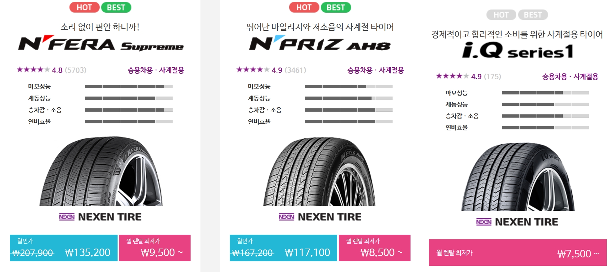 :: 넥센타이어 렌탈 (엔페라 슈프림)