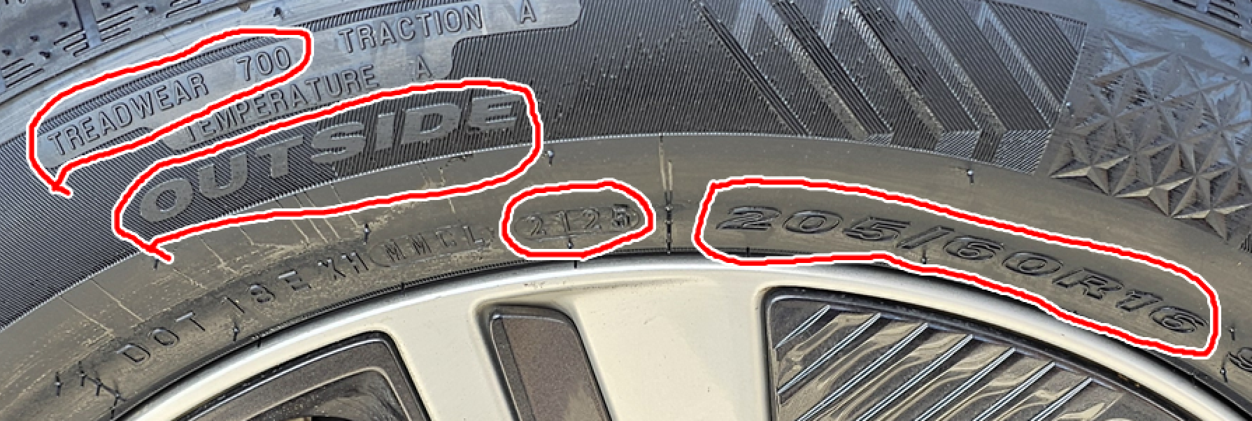* 양방향 타이어도 있으며, 위 타이어는 방향이 있는 타이어로 바깥쪽에 OUTSIDE 라고 표기됨