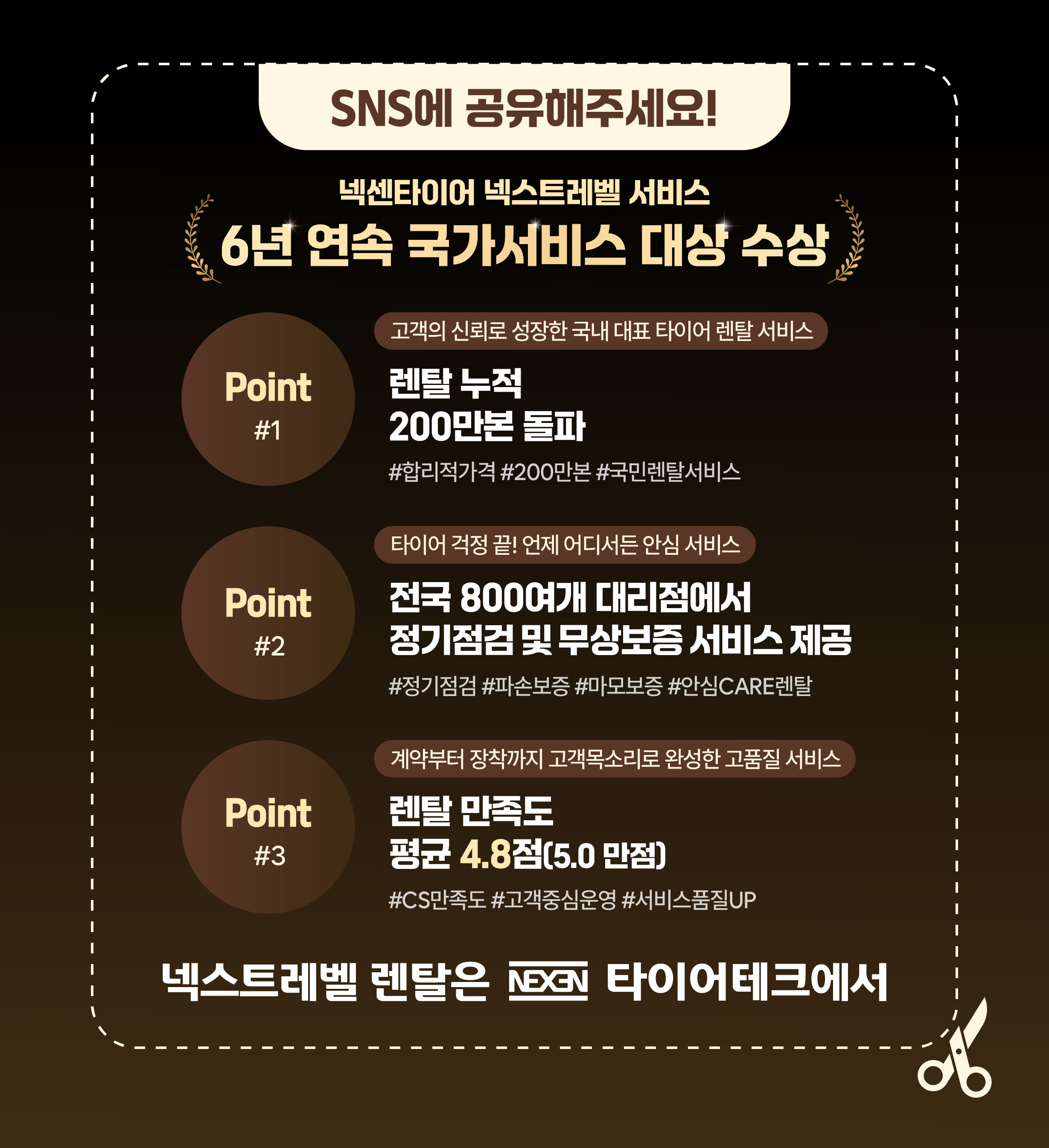 넥센타이어 렌탈 공식 홈페이지 (넥스트레벨) 로 가서 신청해도 되지만, 넥센타이어 와 협약된 렌탈 인증점을 통하면 추가로 상품권을 지급받을수 있다. 나도 추가 상품권을 지급하는 인증점을 통해 신청을 했다.