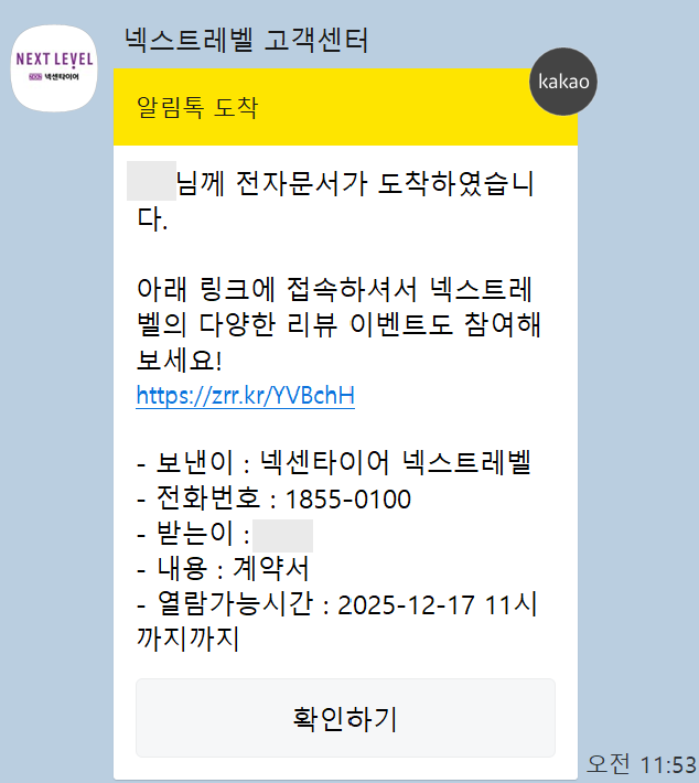 계약이 완료되고 나면 아래와 같은 문자가 온다.