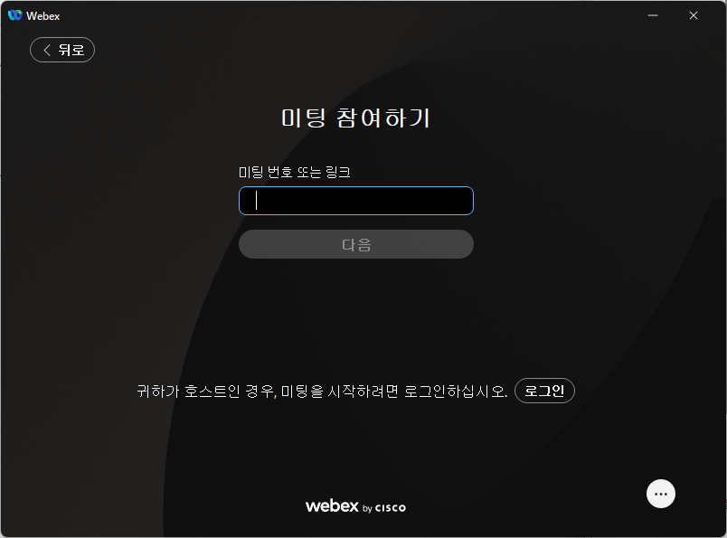 웹엑스는 가입이나 로그인 할 필요없고, 미팅룸에서는 내가 말할 일이 없으므로 음소거 상태여야 한다.