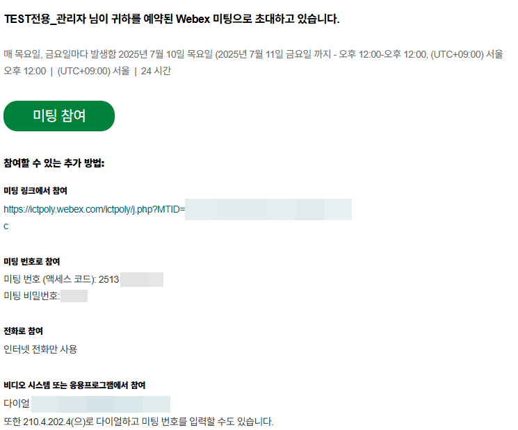 2. 웹엑스(WebEx) 미팅 초대장 (테스트전용)