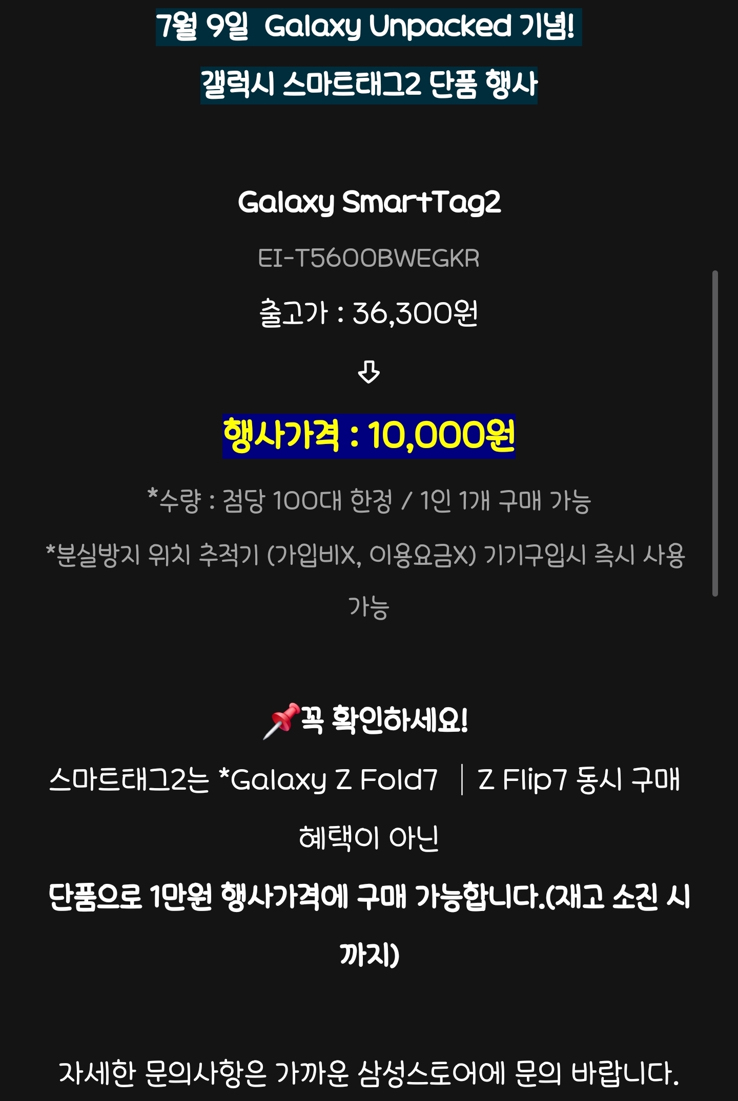 삼성 스토어에서 삼성 스마트태그2를 만원에 판매하는 행사를 7월 24일까지 한다는 공식 블로그의 글을 봤다.
