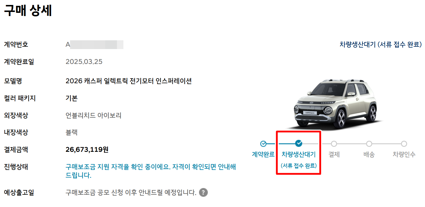 보조금 처리 되면, 바로 다음 단계가 결제 - 배송 순이라 아마도 1달내에 출고가 될 것 같다.