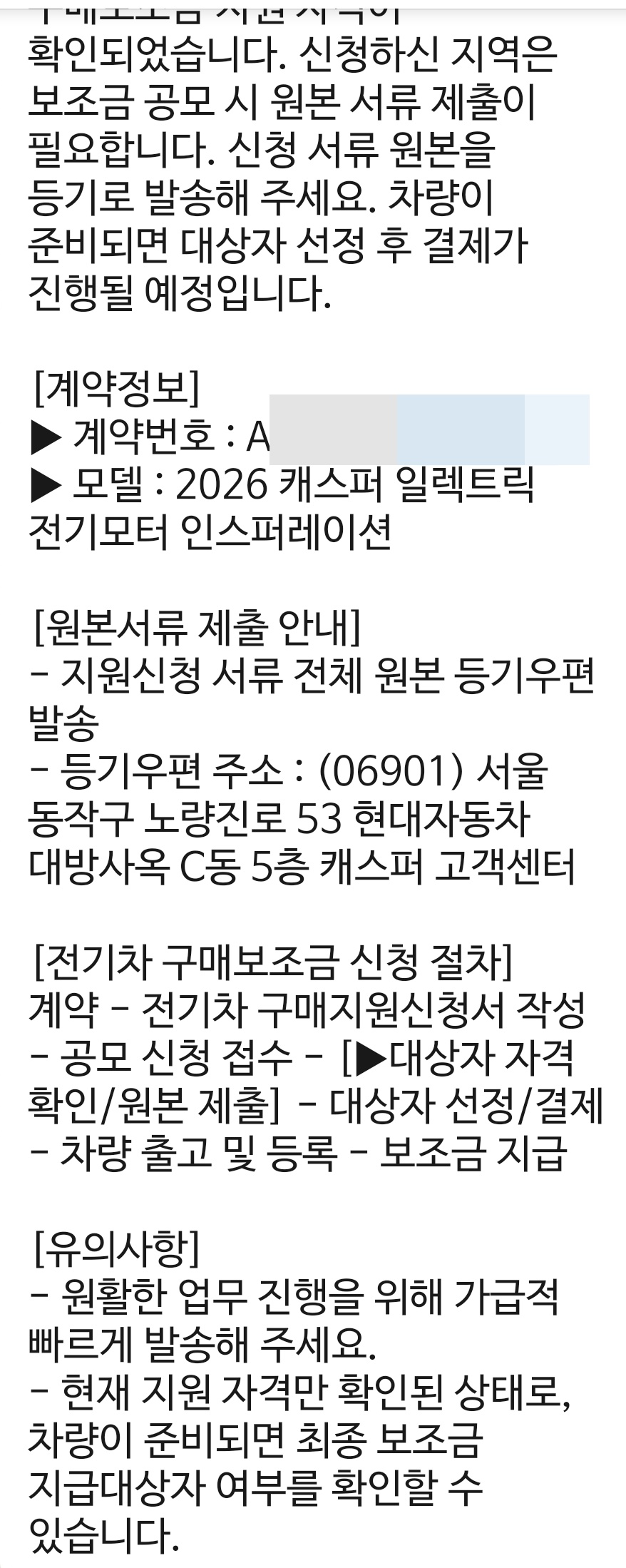 :: 캐스퍼 일렉트릭 보조금 공모서류 제출