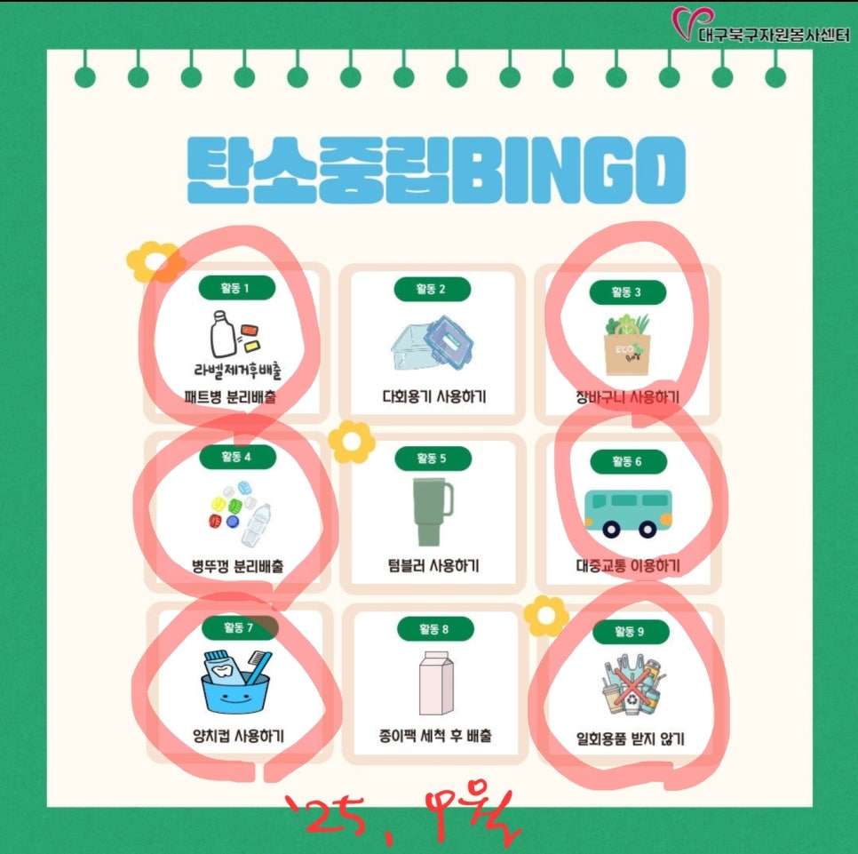 대구 북구 자원봉사센터와 함께하는 '25년 9월 미니봉사 챌린지 수행