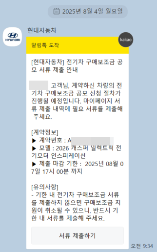 | 캐스퍼 일렉트릭 보조금 공모 서류 제출 (1) | 2025.08.04 |