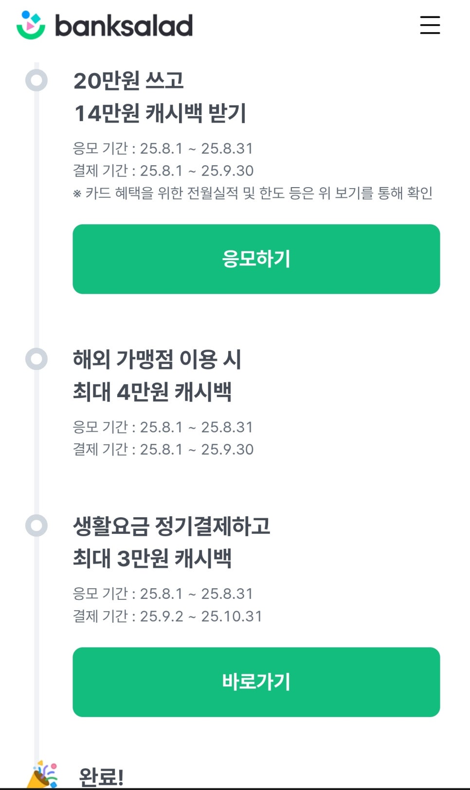 뱅크샐러드 통해 삼성 카드 발급후 20만원 쓰면 14만원 캐시백 해준다고 함.