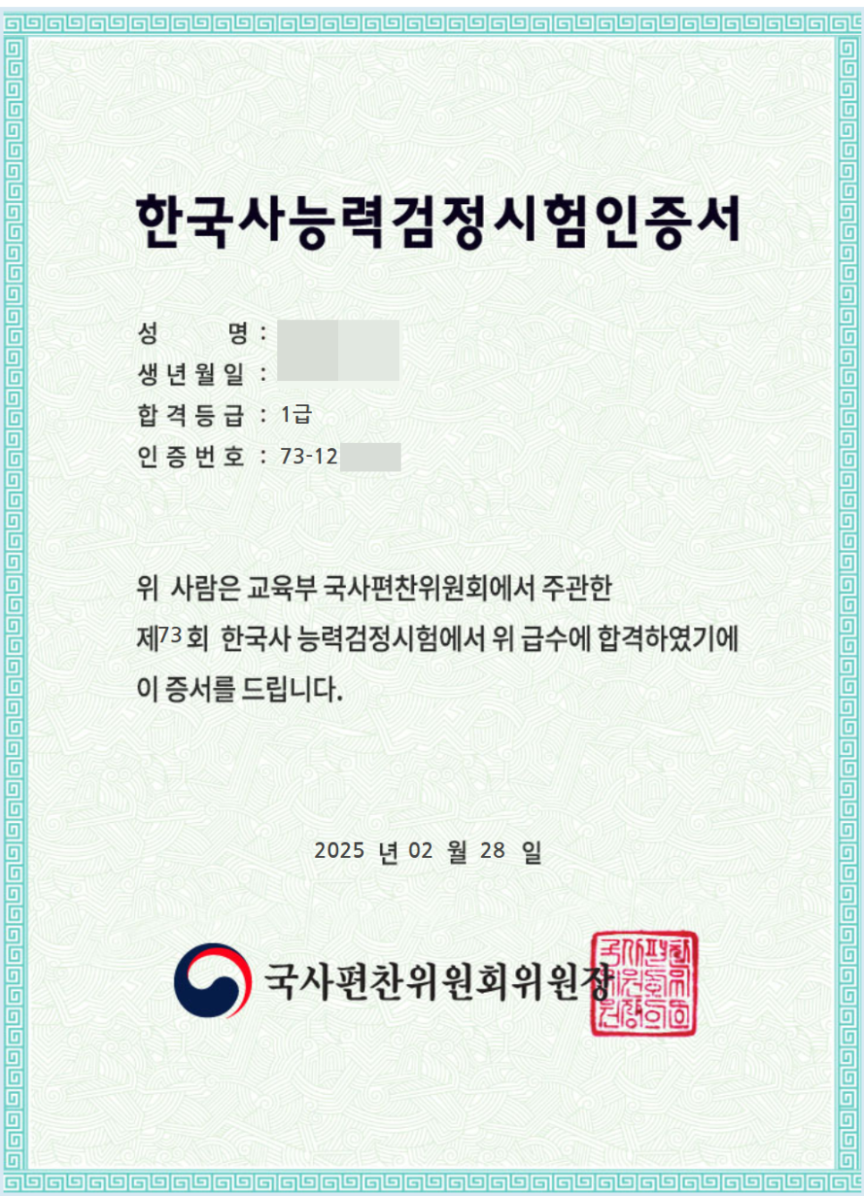 제73회 한국사능력검정