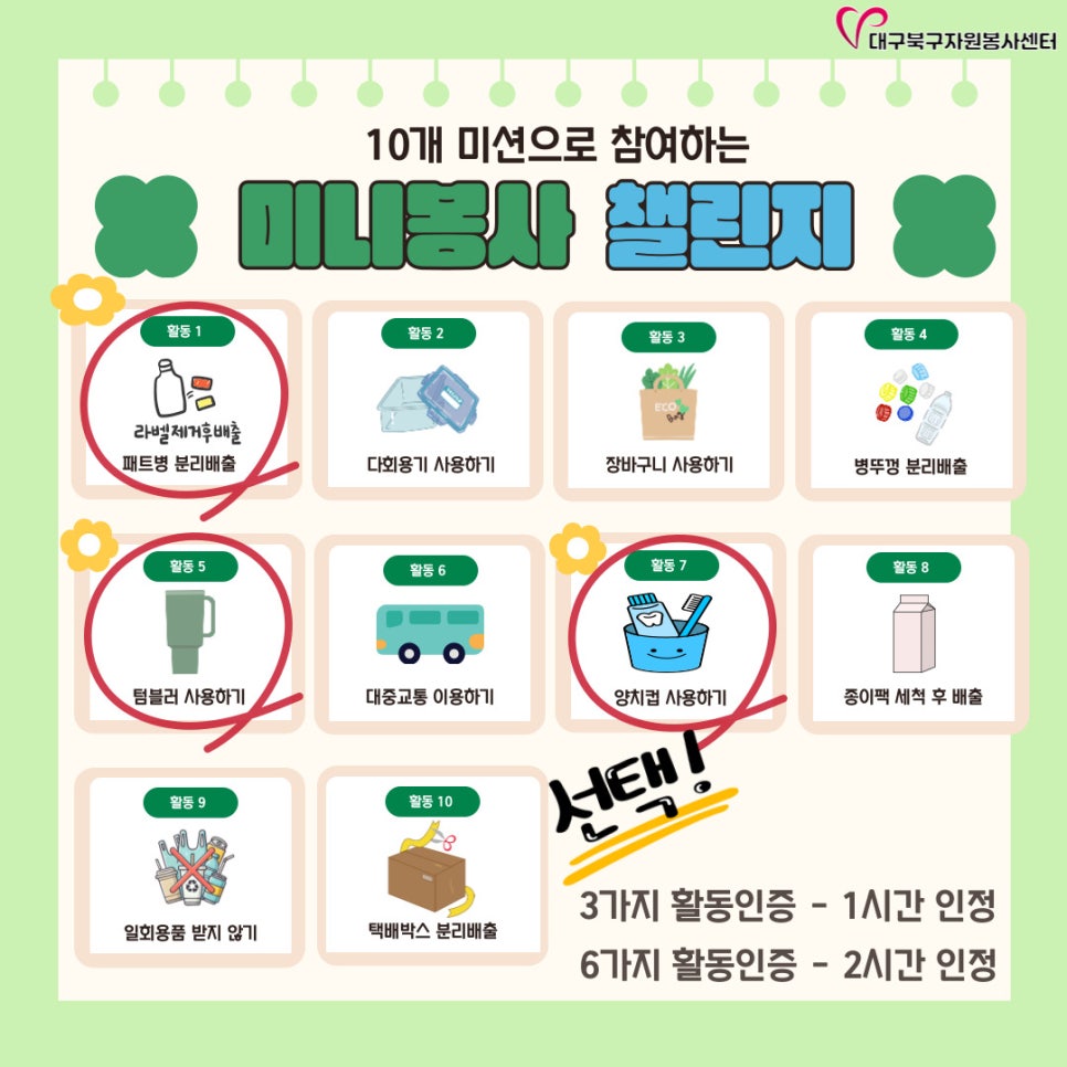 - 미니봉사챌린지 6가지 활동인증 : https://m.site.naver.com/1Sphq